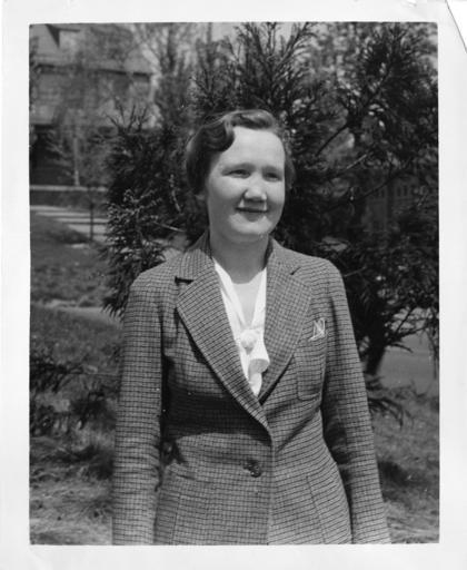 <b>Summary</b>: Regina Flannery Herzfeld (1904-2004), one of the first female anthropologists in the United States, was a professor in the Department of Anthropology, Catholic University, 1935-1971. This photograph was taken at a National Academy of Sciences meeting, Spring 1935, three years before Flannery's marriage to physicist Karl Ferdinand Herzfeld (1892-1978).
