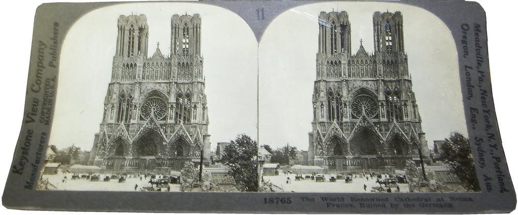 Keywords: Reims Cathedral Ruined by Germans - Stereocard.JPG Reims Cathedral was bombarded by Germans after they were driven from Reims during World War I photo of stereocard by User Roseohioresident at village museum in Auburn Township Tuscarawas County Ohio Ragersville Ohio Keystone View Company copyright ~ 1919 public domain <gallery> file Reims Cathedral Ruined by Germans - Stereocard - rear JPG rear of card </gallery> PD-1923 Roseohioresident DEFAULTSORT Reims Cathedral -World War I Stereo cards of World War I 1919 in France Reims in World War I Reims Cathedral during World War I |