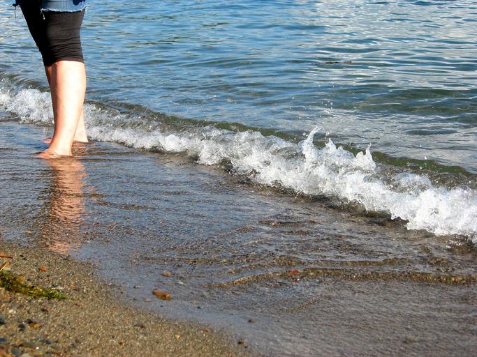 Keywords: relax feet legs lake nature shore wave water summer outdoor fun healthy vacation leisure