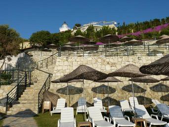 Keywords: relax summer holiday holidays deck chair travel parasol sunbed tourism tourist resort stairs lighthouse hotel kusadasi turkey