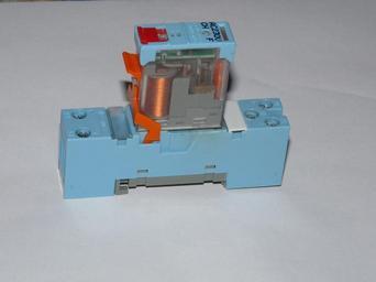 Keywords: Releco relay for DIN rail.JPG en Burnt RELECO relay for DIN rail TS35 DIN EN 60715 own Dmitry G 2010-03-24 Relays for DIN rail Releco relays