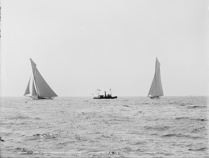 | Keywords: Reliance & Shamrock III-1.jpg Reliance and Shamrock III coming for the line in the America's Cup August 22nd 1903 LOC-image det 4a15393 1903-10-22 PD-Detroit Shamrock III ship 1903 Reliance ship 1903 Boats under sail Black and white photographs |