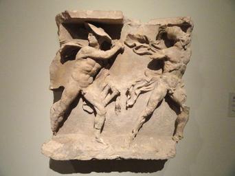 Keywords: Relief of Hermes and Ares, 300-200 BC, Greek, Tarentum, limestone - Cleveland Museum of Art - DSC08221.JPG en Relief of Hermes and Ares 300-200 BC Greek Tarentum limestone Exhibit in the Cleveland Museum of Art Cleveland Ohio USA Photography was permitted in the museum without restriction This artwork is old enough so that it is in the public domain Daderot 2012-09-07 12 31 17 Daderot cc0 Ancient Greek art in the Cleveland Museum of Art Ancient Greek art from Taranto 4th-century BC art in the United States Reliefs of Hermes Ares Ancient Greek reliefs in the United States Nude males in sculpture in the United States |