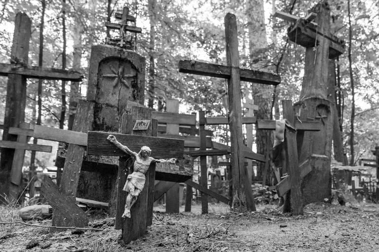 Keywords: religion jesus cross grabarka poland eastern orthodox christianity faith pray symbol crucifixion worship christ catholic black and white