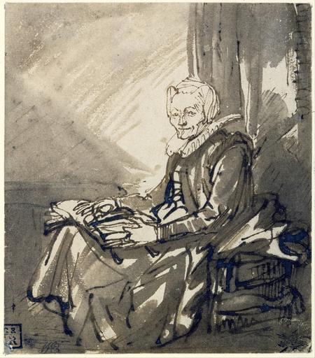 | Keywords: Rembrandt van Rijn - Seated Woman with an Open Book on her Lap - Google Art Project.jpg Material/Technique en Pen and brown ink brown wash Zittende vrouw met opengeslagen boek op schoot Portrait special url_id oAF77PTdW5yp7Q PD-old-100-1923 1669 Google Art Project works by Rembrandt Drawings by Rembrandt 1630s drawings Drawings in the Museum Boijmans Van Beuningen 17th-century portrait drawings of women Portraits by Rembrandt | ||||