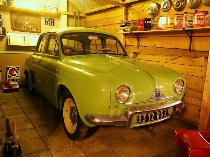 Keywords: Renault Dauphine in garage.JPG Photographed in the museum Terug in de Tijd Horn The Netherlands own 2013-10-13 11 12 51 Alf van Beem CC-zero Museum Terug in de Tijd Nostalgia by Alf van Beem