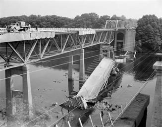 Keywords: richmond va usa hurricane agnes hurricaneagnes virginia flood flooding natural disaster richmond va usa naturaldisasterrichmondvausa blackandwhite monochrome outdoor black and white Construciton workers stand on the undamaged section of the Rt. 1 bridge over the Occoquan Creek. Located on the outskirts of Woodbridge on the border of Prince William and Fairfax Counties. No. 72-1482, Virginia Governor's Negative Collection, Library of Virginia. Construciton workers stand on the undamaged section of the Rt. 1 bridge over the Occoquan Creek. Located on the outskirts of Woodbridge on the border of Prince William and Fairfax Counties. No. 72-1482, Virginia Governor's Negative Collection, Library of Virginia. |