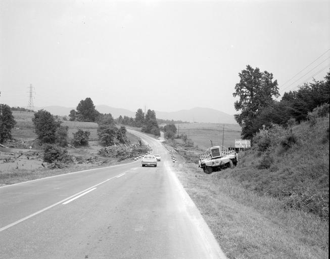| Keywords: richmond va usa hurricane camille hurricanecamille flood flooding damage natural disaster naturaldisaster virginia richmond va usa virginiarichmondvausa blackandwhite monochrome road outdoor freeway black and white The box culvert allowing water drainage under Rt. 29 has been repaired here, approximately three miles south of Lovingston near Rucker Run. View looks north and shows additional debris along the road. Located in Nelson County. No. 69-2204, Virginia Governor's Negative Collection, Library of Virginia. The box culvert allowing water drainage under Rt. 29 has been repaired here, approximately three miles south of Lovingston near Rucker Run. View looks north and shows additional debris along the road. Located in Nelson County. No. 69-2204, Virginia Governor's Negative Collection, Library of Virginia. |