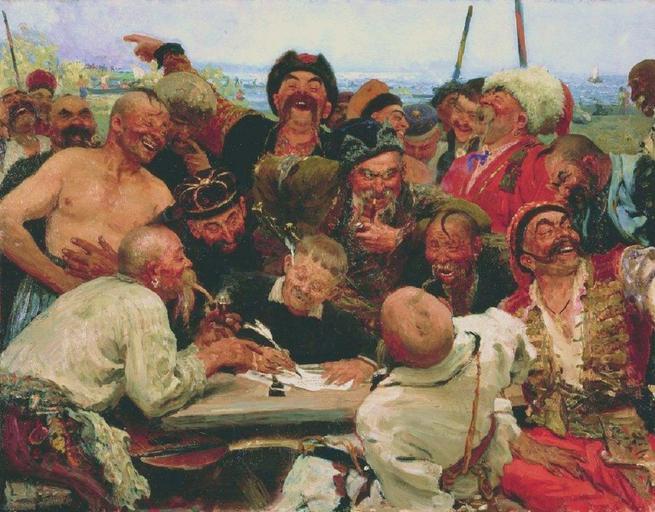 | Keywords: Reply of the Zaporozhian Cossacks (sketch, 1880-90, GTG) 2.jpg langswitch Skizze Sketch Esbozo Эскиз reply Cossacks Oil on canvas 67 × 87 cm Tretyakov Gallery http //01varvara files wordpress com/2008/02/ilya-repin-the-zaporozhe-cossacks-write-a-mocking-letter-to-the-turkish-sultan-1880 jpg 1878 Creator Ilja Jefimowitsch Repin <br style clear both; >thumb left Langswitch First version Oil on canvas 203 × 358 cm The State Russian Museum St Petersburg Primera versión Óleo sobre lienzo 203 × 358 cm Museo estatal ruso San Petersburgo Пе вый ва иант Холст масло 203 × 358 см Госуда ственный Русский музей Санкт-Пете бу г <br style clear both; >thumb left Langswitch Second version Oil on canvas 174 × 265 cm State Fine Arts Museum Kharkiv Segunda versión Óleo sobre lienzo 174 × 265 cm Museo estatal de Bellas Artes Jarkov Вто ой ва иант Холст масло 174 × 265 см Ха ьковский госуда ственный музей изоб азительных искусств <br style clear both; >thumb left Langswitch Preliminary sketch Oil on canvas 32 4 × 49 8 cm The National Art Museum of the Republic of Belarus Minsk Esbozo preliminar Óleo sobre lienzo 32 4 × 49 8 cm Museo Nacional de arte de la república de Bielorrusia Minsk П едва ительный эскиз Холст масло 32 4 × 49 8 см ациональный художественный музей Республики Бела усь инск Reply of the Zaporozhian Cossacks PD-old-auto 1930 From wikipedia de 1 date/time username edit summary ---- 08 08 17 Jan 2006 de Benutzer Elya <nowiki> Bild-PD --> Bild-PD-Kunst 1880 </nowiki> ---- 01 22 4 Jan 2006 de Benutzer Elya <nowiki> Lizenzbaustein </nowiki> ---- 16 31 26 Jan 2005 de Benutzer Hoch auf einem Baum <nowiki> Änderungen von <a href /wiki/Benutzer 193 174 90 94 title Benutzer 193 174 90 94 >Benutzer 193 174 90 94</a> rückgängig gemacht und letzte Version von <a href /wiki/Benutzer Ilja_Lorek title Benutzer Ilja Lorek >Benutzer Ilja Lorek</a> wiederhergestellt </nowiki> ---- 14 47 26 Jan 2005 de Benutzer 193 174 90 94 <nowiki></nowiki> ---- 14 51 20 Dez 2004 de Benutzer Ilja Lorek <nowiki></nowiki> ---- 17 25 16 Dez 2004 de Benutzer Ilja Lorek <nowiki></nowiki> ---- 16 50 22 Nov 2004 de Benutzer 194 251 240 113 <nowiki></nowiki> ---- 17 35 16 Mär 2004 de Benutzer ErikDunsing <nowiki> tippfix </nowiki> ---- 20 14 16 Sep 2003 de Benutzer Elya <nowiki></nowiki> ---- 20 11 16 Sep 2003 de Benutzer Elya <nowiki> Die Saporoher Kosaken schreiben dem Sultan einen Brief Gemälde von Ilja Repin Ausschnitt </nowiki> Original upload log Legende Aktuell dies ist das aktuelle Bild Löschen lösche diese alte Version Zurücksetzen verwende wieder diese alte Version Löschen Aktuell 20 11 16 Sep 2003 de Benutzer Elya Elya de Benutzer_Diskussion Elya Diskussion 250 x 199 12811 Byte Die Saporoscher Kosaken schreiben dem Sultan einen Brief Gemälde von Ilja Repin Ausschnitt |