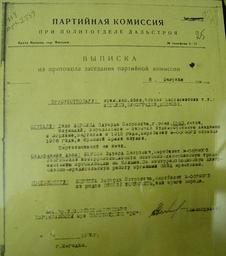 Keywords: Report of Party Committee about Berzin.jpg ru Выписка из п отокола заседания па ткомиссии п и Политотделе Дальст оя от 8 фев аля 1938 г об исключении Бе зина Э П из ядов ВКП б Из экспозиции агаданского областного к аеведческого музея own Gulag-Museum Magadan Alglus 1938-02-08 PD-old Eduard Petrovich Berzin |