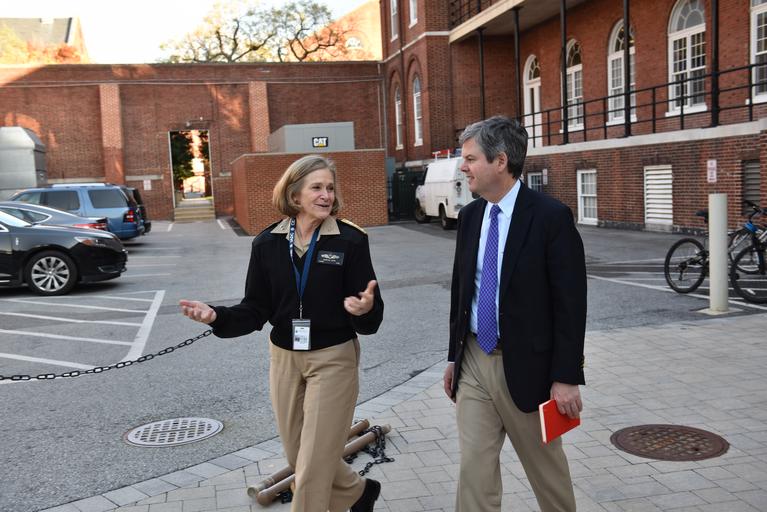 Keywords: FORT LESLEY J. MCNAIR -- Kevin Sullivan, Interim Permanent Representative at the U.S. Mission to the Organization of American States, meets with the Inter-American Defense College Director U.S. Navy RADM Martha Herb at the IADC here Nov. 17, 2016. Sullivan discussed the IADC mission with the director as they toured the college campus, greeting students and staff members.