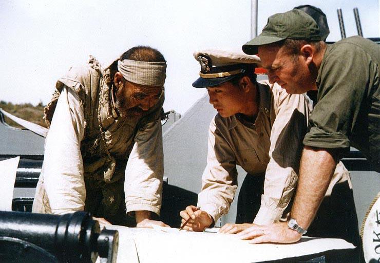 | Keywords: Republic of Korea Navy officer and U.S. Navy officer question North Korean fisherman.jpg Photo 80-G-K-14194 Color Operation Fishnet Korea 1952 A Republic of Korea Navy officer and a U S Navy Underwater Demolition Team officer question a captured North Korean fisherman about the location of fishing nets off the enemy coast They are part of Operation Fishnet intended to reduce Communist forces' food supplies by destroying North Korean fishing nets Photograph is dated 16 September 1952 Official U S Navy Photograph now in the collections of the National Archives http //www history navy mil/photos/images/k14000/k14194 jpg 1952-09-16 US Navy PD-USGov-Military-Navy original upload log wikitable date/time username resolution size edit summary ---- 12 15 13 March 2008 User Mbdortmund 740×512 84 KB <nowiki></nowiki> ---- 10 58 9 December 2007 User Bin2k1 740×540 96 KB <nowiki> <span class comment > Photo 80-G-K-14194 Color Operation Fishnet Korea 1952 A Republic of Korea Navy officer and a U S Navy Underwater Demolition Team officer question a captured North Korean fisherman about the location of fishing nets o </span></nowiki> Republic of Korea Navy Military people of South Korea Retouched by Mbdortmund |