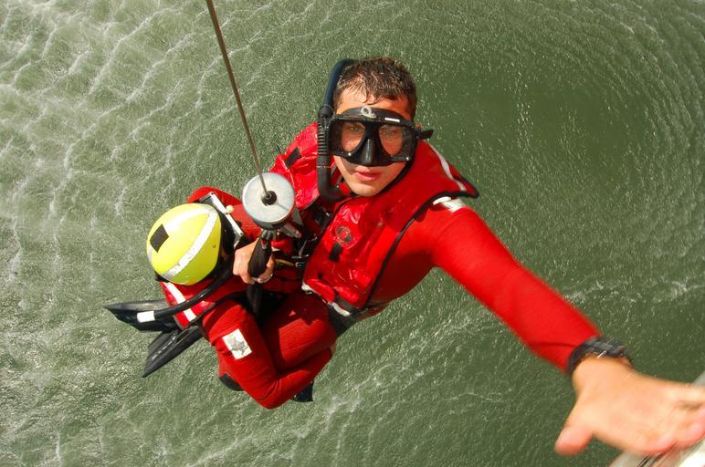 Keywords: rescue swimmer training military emergency lifesaver bravery heroic danger ocean helicopter save help