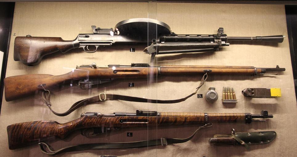 Keywords: Reserve office school equipment post WW2 RUK-museo 2.JPG en Military equipment used in Finnish reserve office school immediately after World War 2 1 Degtyarev light machine gun 2 Mosin-Nagant m/1891 3 rifle oil bottle wooden training blanks and bland firing adapter 4 Finnish m/39 rifle Ukko-Pekka Photographed in RUK-museum in Hamina fi Reserviupseerikoulussa heti sotien jälkeen käytettyä kalustoa 1 M/27 Degtarjev Emma pikakivääri 2 kivääri m/91 3 kiväärin öljypullo paukkupatruunoita ja patruunanmurskain 4 kivääri m/39 Ukko-Pekka Kuvattu RUK-museossa Haminassa own MKFI 2015-08-12 Finnish Reserve officer school museum Degtyarev light machine gun Mosin-Nagant rifle Finnish Mosin-Nagant variants 2015 in Hamina August 2015 in Finland Taken with Canon EOS 60D Taken with Canon EF-S 15-85mm F3 5-5 6 IS USM Files by User MKFI |