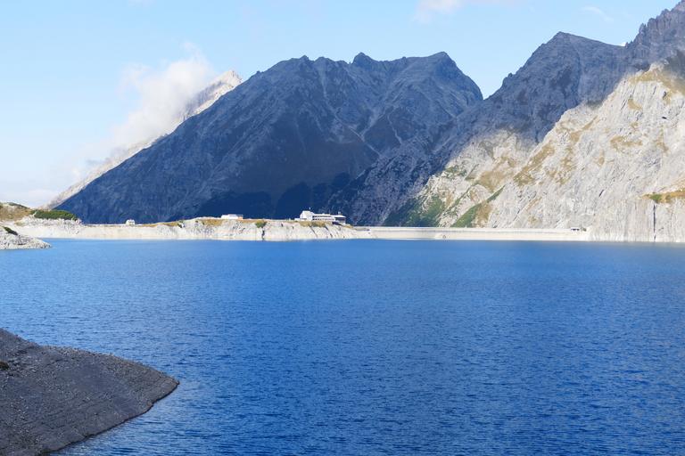 Keywords: reservoir dam lüner lake energy generation mountains lake artificial blue building douglas cottage montafon vorarlberg austria