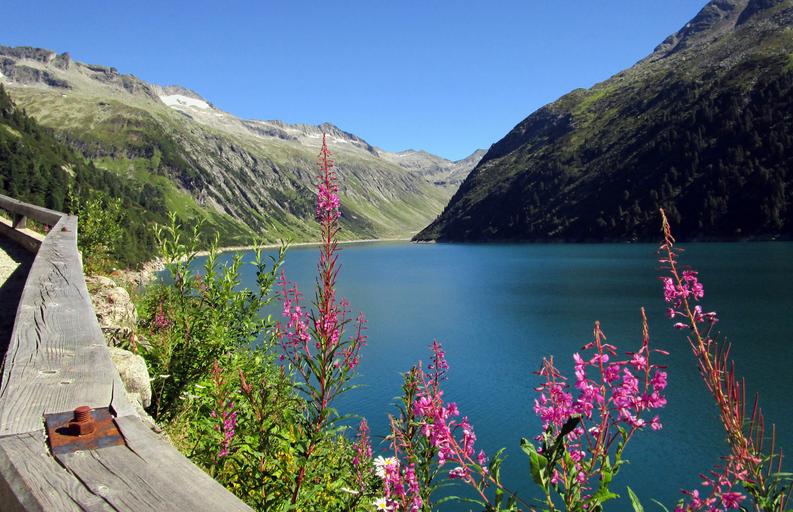 | Keywords: reservoir water storage lake water reservoir water alpine nature mountains austria panorama hiking sky clouds landscape plant wild flower highlands distant view partly cloudy blue sky holiday ziller basic zillertal water power cycling mount bike |