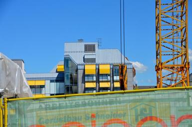 Keywords: residence skyscraper site crane scaffolding building construction action free sky noise pollution urban planning forward planning due date schedule period business time time window high up