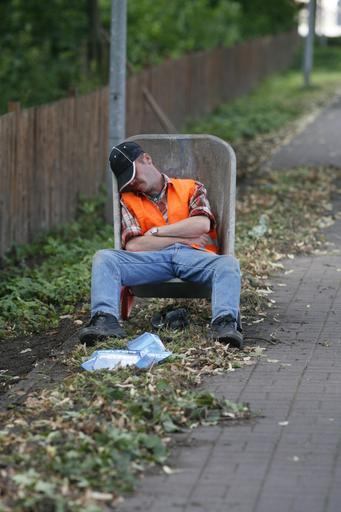 Keywords: rest sleep humor lunch rullebör wheelbarrow work gardening municipal workers commune worker grooming gardener