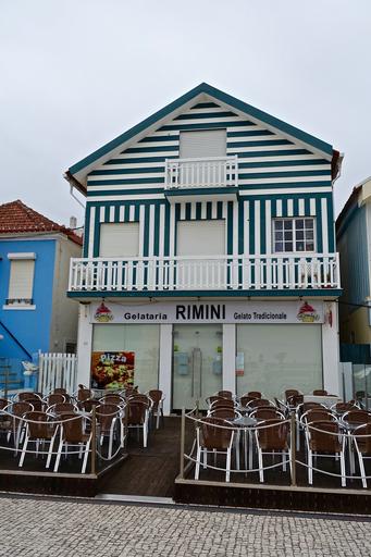 Keywords: restaurant building colourful stripes exterior decoration facade chairs architecture
