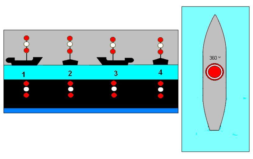 Keywords: Restrictedcapability.PNG aditional special navigational lights for ship with restricted capability of stearing own 2007-01-01 Claudio Elias GFDL Navigational lights