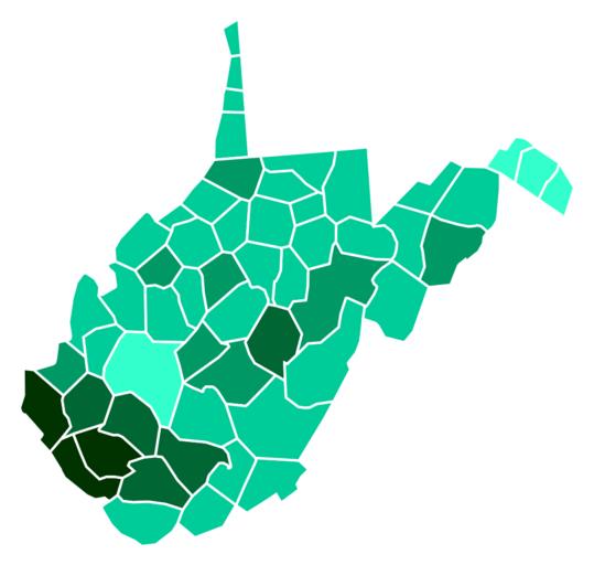 Keywords: Results by county of Paul T. Farrell.svg 33FFCC <5 00CC99 5 “10 009966 10 “15 006633 15 “20 003300 >20 own MB298 2016-05-21 2016 in West Virginia Paul T Farrell Jr presidential campaign 2016 Election maps of West Virginia 2016 U S presidential election maps by state Democratic primary SVG maps by MB298 West Virginia Democratic primary 2016