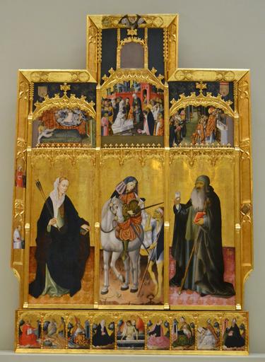 | Keywords: Retaule de Sant Martí amb Santa Úrsula i Sant Antoni Abat, Gonçal Peris, Museu de Belles Arts de València.JPG Artwork Q935351 Creator Gonçal Peris Esta obra llamada el Retablo de San Martín Santa Úrsula y San Antonio Abad procede de la Cartuja de Porta Coeli y debió ser realizada aproximadamente entre 1437 y 1440 Retaule de Sant martí Santa Úrsula i Sant Antoni Abat de Gonçal Peris procedent de la Cartoixa de Porta Coeli circa 1437 1440 Temple y óleo sobre tabla Size cm 241 310 Institution Museo de Bellas Artes de Valencia accession number 250 place of creation place of discovery object history exhibition history credit line http //www cult gva es/mbav/data/es06100 htm own PD-old-100 cc-by-sa-3 0 Retaule de Sant Martí amb Santa Úrsula i Sant Antoni Abat - Gonçal Peris Sarrià |