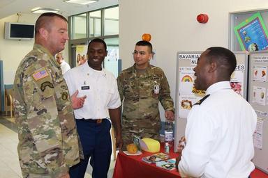 | Keywords: u.s. army medical department activity bavaria usarmymedicaldepartmentactivitybavaria bmeddac meddac bavaria meddacbavaria germany u.s. army usarmy col. david richardson coldavidrichardson lt. col. shannon shaw ltcolshannonshaw meddac regional health command europe regionalhealthcommandeurope rhc-e rhce ansbach health clinic ansbachhealthclinic grafenwoehr health clinic grafenwoehrhealthclinic stuttgart health clinic stuttgarthealthclinic vilseck health clinic vilseckhealthclinic health usag bavaria usagbavaria col. lance varney collancevarney resiliency physical fitness physicalfitness mental health mentalhealth healing patient care patientcare patient satisfaction patientsatisfaction patient safety patientsafety soldier readiness soldierreadiness soldier fitness soldierfitness preventive medicine preventivemedicine army triad armytriad immunization flu flu shots flushots influenza retirees military spouses militaryspouses cold war coldwar europe. united states army garrison bavaria europeunitedstatesarmygarrisonbavaria brig. gen. tony aguto briggentonyaguto 7th army training command 7th atc 7tharmytrainingcommand7thatc command sergeant major jeffrey sweezer commandsergeantmajorjeffreysweezer retired military retiredmilitary retiree appreciation day retireeappreciationday people indoor GRAFENWOEHR, Germany – Military retirees were honored at the United States Army Garrison Bavaria's annual Retiree Appreciation Day held at the BMEDDAC Grafenwoehr Health Clinic on Tower Barracks 14 October. More than 200 retirees and annuitants took advantage of services to update medical records, receive flu vaccinations, make medical and dental appointments as well as take advantage of the many community services open to them offered on military posts across Germany. During the course of the event retirees were able to speak with Brig. Gen. Tony Aguto, Commanding General for the 7th Army Training (7th ATC) and 7th ATC Command Sergeant Major Jeffrey D. Sweezer, USAG Bavaria Commander Col. Lance Varney as well as BMEDDAC Commander Col. David Richardson and Grafenwoehr Health Clinic Commander Lt. Col. Shannon Shaw. To learn more about the people and facilities of the U.S. Army Medical Department Activity Bavaria (BMEDDAC) and the clinics they support in Ansbach, Grafenwoehr, Hohenfels, Stuttgart and Vilseck visit the BMEDDAC website at rhce.amedd.army.mil/bavaria Photo by Michael Beaton, U.S. Army Medical Department Activity Bavaria Public Affairs (Released). GRAFENWOEHR, Germany – Military retirees were honored at the United States Army Garrison Bavaria's annual Retiree Appreciation Day held at the BMEDDAC Grafenwoehr Health Clinic on Tower Barracks 14 October. More than 200 retirees and annuitants took advantage of services to update medical records, receive flu vaccinations, make medical and dental appointments as well as take advantage of the many community services open to them offered on military posts across Germany. During the course of the event retirees were able to speak with Brig. Gen. Tony Aguto, Commanding General for the 7th Army Training (7th ATC) and 7th ATC Command Sergeant Major Jeffrey D. Sweezer, USAG Bavaria Commander Col. Lance Varney as well as BMEDDAC Commander Col. David Richardson and Grafenwoehr Health Clinic Commander Lt. Col. Shannon Shaw. To learn more about the people and facilities of the U.S. Army Medical Department Activity Bavaria (BMEDDAC) and the clinics they support in Ansbach, Grafenwoehr, Hohenfels, Stuttgart and Vilseck visit the BMEDDAC website at rhce.amedd.army.mil/bavaria Photo by Michael Beaton, U.S. Army Medical Department Activity Bavaria Public Affairs (Released). |