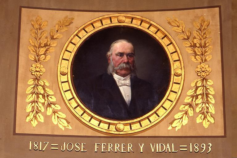 | Keywords: Retrat de Josep Ferrer i Vidal - Joan Juncosa Morlans - 8595.jpg Artwork Creator Joan Juncosa Morlans ca Retrat de bust d'un home d'edat avançada amb els cabells grisos grans patilles i bigoti amb camisa blanca de coll alt i jaqueta fosca La tela amb forma de medalló està enganxada sobre el mur i envoltada per un marc i unes fulles de llorer pintades en daurat com la inscripció amb el nom de Jose Ferrer y Vidal i les dates de naixement i mort situades a sota El retrat i les fulles estan inscrits en un rectangle between Oil on canvas cm Institution Biblioteca Museu Víctor Balaguer object history exhibition history credit line accession number 8595 place of creation Biblioteca Museu Víctor Balaguer-cooperation PD-Art PD-old-100-1923 Uploaded with UploadWizard Paintings in the Biblioteca Museu Víctor Balaguer portrait paintings Josep Ferrer i Vidal Joan Juncosa Morlans |