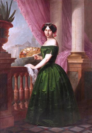 Keywords: Retrato de Josefa García Solís (Museo del Prado).jpg artwork Creator Antonio Maria Esquivel Retrato de la dama española Josefa García Solís 1852 Oil on canvas Size cm 147 2 211 Institution Museo del Prado Depositado en el Institution Museo del Romanticismo https //content cdnprado net/imagenes/Documentos/imgsem/28/2843/28431985-fc18-4cab-ba78-1b7003b588a9/0ff8ca77-f15d-4872-afc8-91bf0ba350d4 jpg PD-old-100 https //www museodelprado es/coleccion/obra-de-arte/josefa-garcia-solis/28431985-fc18-4cab-ba78-1b7003b588a9 accession number P03318 other versions DEFAULTSORT 1852; Josefa García Female portrait paintings by Antonio María Esquivel Portrait paintings by Antonio María Esquivel in the Prado Museum 19th-century portrait paintings in the Prado Museum Female portrait paintings in the Museo del Romanticismo de Madrid Portrait paintings by Antonio María Esquivel in the Museo del Romanticismo de Madrid 1850s dresses 1850s oil on canvas paintings in Spain Portrait 1850s portrait paintings from Spain 1852 oil on canvas paintings Portrait 1852 portrait paintings from Spain 19th-century oil portraits of standing women at full length 19th-century women looking at viewer in art Columns in portrait paintings Females with green dresses in art Neoclassical paintings People of Spain in 1852 Portrait paintings of women of Spain Portrait paintings with the balcony Portraits half-turned Portraits with fans Portraits with garden vases