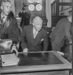 | Keywords: rettsak litteratur forfattere oslo norge groupshot people blackandwhite monochrome black and white Behandling av ankesak i Høyesterett 9. mai 1958 i forbindelse med utgivelsen av Sangen om den røde rubin. Fra venstre: forsvarer høyesterettsadvokat Knut Blom, forlagsredaktør Harald Grieg. Fotograf: Fjørtoft, Bjørn, Billedbladet NÅ, Riksarkivet (RA/PA-0797/U/Ue/L0064/0012) Behandling av ankesak i Høyesterett 9. mai 1958 i forbindelse med utgivelsen av Sangen om den røde rubin. Fra venstre: forsvarer høyesterettsadvokat Knut Blom, forlagsredaktør Harald Grieg. Fotograf: Fjørtoft, Bjørn, Billedbladet NÅ, Riksarkivet (RA/PA-0797/U/Ue/L0064/0012) |