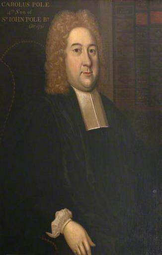 | Keywords: RevCarolusPole AntonyHouseCornwall.jpg en Rev Carolus Pole 1686-1731 3rd son of Sir John Pole 3rd Baronet of Shute Devon and Rector of St Breock in Cornwall By his wife Sarah Rashleigh a daughter of Jonathan II Rashleigh 1642-1702 of Menabilly Cornwall he was the grandfather of Reginald Pole-Carew 1753-1835 who inherited the Carew seat of Antony from his cousin Sir Coventry Carew 6th Baronet d 1748 Oil on canvas 85 x 64 cm; Collection of the National Trust accession number 353088 on loan from the Trustees of Antony House http //www bbc co uk/arts/yourpaintings/paintings/the-reverend-carolus-pole-16861731-99184 British School 1730 Antony House Pole family of Shute PD-old-100 |