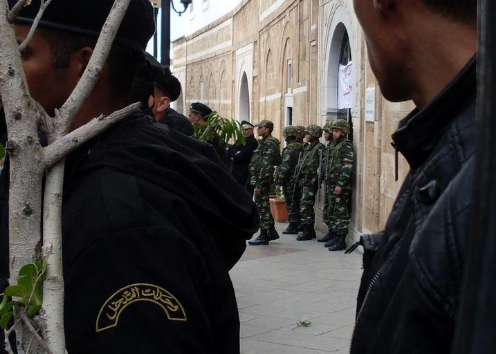 Keywords: Révolution des Jasmins 18.jpg fr Militaires et agents de la Brigade de l'Ordre Publique protégeant l'entrée principale du premier ministère à la Kasbah lors des manifestations contre le gouvernement de transition lors de la révolution des Jasmins own Rais67 2011-01-22 Cc-zero Demonstrations and protests relating to the Tunisian Revolution Military people of Tunisia Dar El Bey |