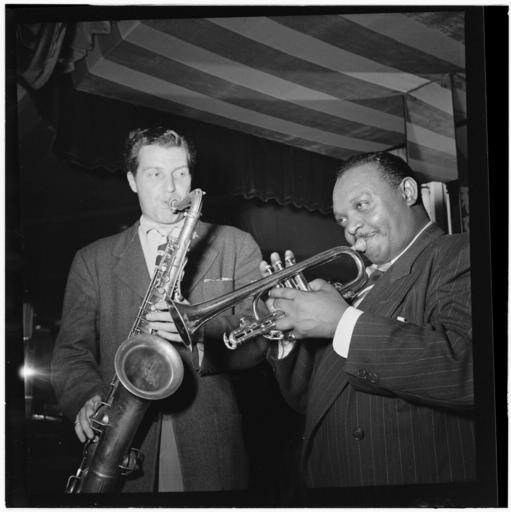 | View Original: | Rex Stewart and Charlie Barnet, Aquarium, New York, N.Y., ca. Aug. 1946 (William P. Gottlieb 08171).jpg (1024x1026) | |||