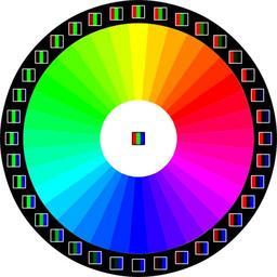 Keywords: RGB color wheel 10.svg en RGB color wheel 10° and RGB pixels 2013-06-25 03 23 16 own László Németh <gallery> Image RGB color wheel pixel 5 svg 72 colors with RGB pixels Image RGB color wheel pixel 15 svg 24 colors with RGB pixels Image RGB color wheel pixel 30 svg 12 colors with RGB pixels Image RGB color wheel 360 svg 360 colors Image RGB color wheel 72 svg 72 colors Image RGB color wheel 36 svg 36 colors Image RGB color wheel 24 svg 24 colors Image RGB color wheel 12 svg 12 colors </gallery> Valid SVG Created with LibreOffice ; Created in LibreOffice 4 with this LibreLogo program ; Usage Put this code into an English language document in LibO Writer ; and click on the Start icon of the View»Toolbars»Logo toolbar TO subpixel r g b size FILLCOLOR r g b RECTANGLE size 3 size END TO pixel r g b where width z HEADING v PENSIZE IF where -1 ; central RGB pixel for white distance 0 PENCOLOR BLACK distance 150 + 1 5 width PENCOLOR WHITE PENUP HEADING where-width FORWARD distance HEADING 3h PENSIZE width/5 PENDOWN SQUARE 1 5 width PENUP BACK width/2 subpixel r 0 0 width/2 FORWARD width/2 subpixel 0 g 0 width/2 FORWARD width/2 subpixel 0 0 b width/2 BACK width/2 HEADING where-width BACK distance HEADING z PENSIZE v END TO pie r g b where width FILLCOLOR r g b CIRCLE 300 300 where where + width pixel r g b where width FILLCOLOR r 0xff g 0xff b 0xff CIRCLE 300 300 180 + where 180 + where + width r r 0xff g g 0xff b b 0xff pixel r g b 180+where width END PENDOWN HOME CLEARSCREEN HIDETURTLE i INPUT Level or Enter level 2 IF i i 2 i INT i PENCOLOR INVISIBLE size 360/ 12 i LEFT size 1 5 ; PICTURE RGB_color_wheel_ d svg size ; from LibreOffice 4 1 1 PICTURE FILLCOLOR BLACK CIRCLE 300 + size 6 FILLCOLOR WHITE CIRCLE 300 REPEAT 2 i+1 u REPCOUNT-1 255/ 2 i pie 255 255 - INT u 0 REPCOUNT size size REPEAT 2 i u REPCOUNT 255/ 2 i pie 255 0 INT u 60 + REPCOUNT + 1 size size REPEAT 2 i-1 u REPCOUNT 255/ 2 i pie 255 - INT u 0 255 120 + REPCOUNT + 1 size size FILLCOLOR WHITE CIRCLE 100 pixel 255 255 255 -1 size cc-zero Uploaded with UploadWizard Colorwheels Images with LibreLogo source code |