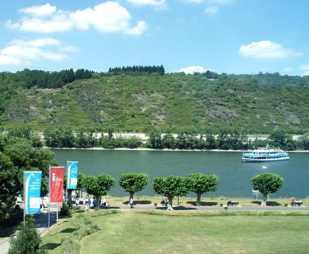 Keywords: rhine andernach choir event plant geyser ship trees sky blue rush flags visitors popular rheinland germany