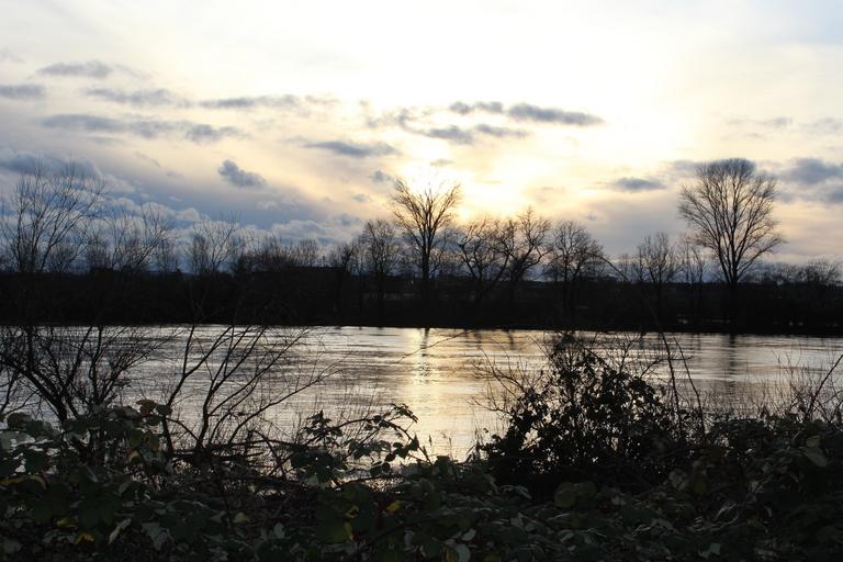 Keywords: rhine river high water water level water clouds mirroring atmospheric landscape abendstimmung