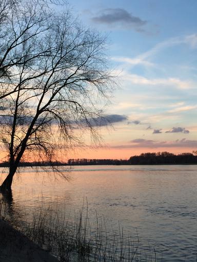 Keywords: rhine river tree water abendstimmung landscape nature sky natural water trees in the water high water log tree in the water