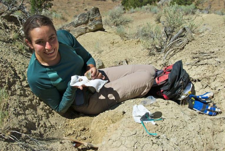 Keywords: geology fossils fieldwork fossil beds excavation people outdoor GeoCorps Intern Win McLaughlin, John Day Fossil Beds National Monument, Oregon, showing off part of a rhino tooth after chiseling it out of a sandstone deposit near Pineville, Oregon. (NPS Photo by Win McLaughlin, GIP) GeoCorps Intern Win McLaughlin, John Day Fossil Beds National Monument, Oregon, showing off part of a rhino tooth after chiseling it out of a sandstone deposit near Pineville, Oregon. (NPS Photo by Win McLaughlin, GIP) |