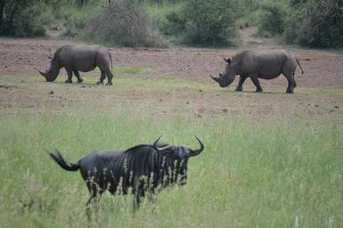 Keywords: rhino wildebeest safari wild africa nature rhinoceros wildlife