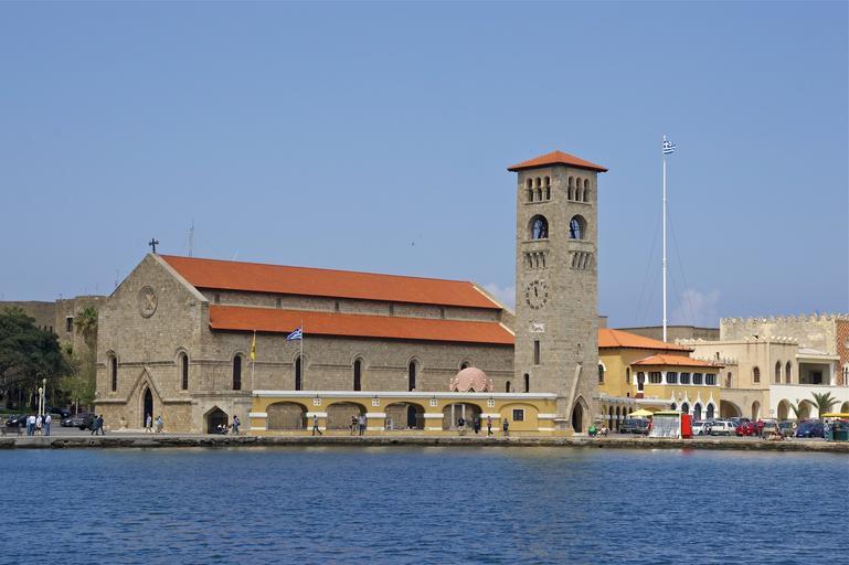Keywords: rhodes greece cathedral church building architecture lake water shoreline sky clouds scenic outside