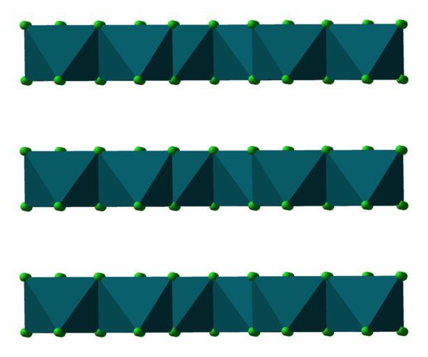| Keywords: Rhodium-trichloride-layers-xtal-1964-3D-polyhedra-B.png Polyhedral model of part of the crystal structure of rhodium III chloride RhCl<sub>3</sub> X-ray diffraction data from http //dx doi org/10 1016/0022-5088 64 90103-1 J Less Common Met 1964 6 226-231 Model constructed in http //www crystalmaker com/ CrystalMaker 8 1 Image generated in http //accelrys com/products/discovery-studio/visualization/discovery-studio-visualizer html Accelrys DS Visualizer own 2009-05-03 Ben Mills Benjah-bmm27 Images by Ben Mills Rhodium III chloride Crystal structures of chlorides |