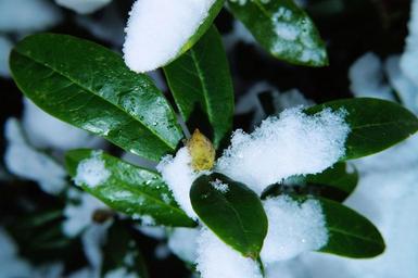 Keywords: rhododendron leaves bud winter snow white green nature plant