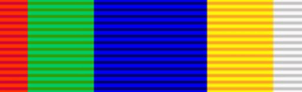 Keywords: Ribbon - Dekoratie voor Trouwe Dienst (SAR).png Size 320x98px scale 10px 1 mm Dekoratie voor Trouwe Dienst a South African military good service decoration in the South African Republic Transvaal orientation 32 millimetres wide with a 3 mm wide red band a 7 mm wide green band a 12 mm wide blue band a 7 mm wide orange band and a 3 mm wide white band own Col André Kritzinger 2015-01-27 100px<br> Orange Free State orientation CC0 Col André Kritzinger Kritzinger's decorations medals 375 1 Ribbon bars of South Africa 375 1 Ribbon bars of South Africa pre-1952 375 1