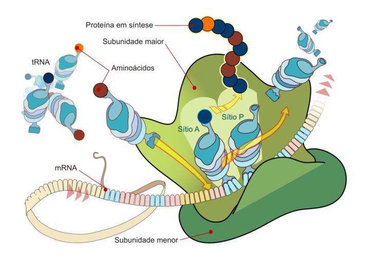 | Keywords: Ribossomo tradução mRNA.svg diagram showing how the translation of the mRNA and the synthesis of proteins is made by ribosomes Diagramme montrant comment la traduction de l'ARN messager et la synthèse protéique se font dans les ribosomes Légendes en anglais Diagrama mostrando como ocorre a tradução do mRNA e a síntese de proteínas pelos ribossomos File Ribosome_mRNA_translation_en svg 2011-03-25 20 07 UTC LadyofHats Translation Nossedotti Anderson Brito LadyofHats Other versions/Ribosom mRNA translation Tradução para português brasileiro pt-BR Nossedotti Ribosome_mRNA_translation_en svg Original upload log This image is a derivative work of the following images File Ribosome_mRNA_translation_en svg licensed with PD-user 2009-06-29T08 57 08Z LadyofHats 651x459 151312 Bytes <nowiki>outlined text to aboid rendering problems FOR TEXT EDIT USE EARLIER UPLOADED VERSION </nowiki> 2009-06-29T08 47 13Z LadyofHats 651x459 115756 Bytes <nowiki>reflected image to be readen from left to right and then fixed the tRNA so it doesnt seem to have in between pieces</nowiki> 2008-09-29T19 41 37Z LadyofHats 646x459 137836 Bytes <nowiki> diagram showing how the translation of the mRNA and the synthesis of proteins is made by ribosomes self-made based on http //publications nigms nih gov/insidethecell/images/ch2_ribosome_pr</nowiki> Uploaded with derivativeFX Translation biology Diagrams in Portuguese |