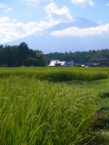 Keywords: rice rice cultivation ear of rice green yellow-green paddy field mt fuji cloud sky blue sky white cloud woods 246 route gotemba shizuoka prefecture japan summer