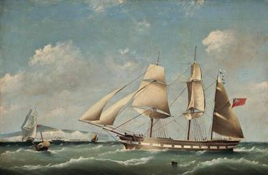 View Original: | Richard_B._Spencer_(attrib.)_-_A_merchantman_in_two_positions_in_the_Channel_off_Dover.jpg (3200x2097) | |||
