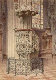 Keywords: Richard Moser Stephansdom Pilgramkanzel 1916.jpg Artwork Creator Richard Moser Die Pilgramkanzel in St Stephan 1916 by 1936 Pastel paper Richard Moser 1916 signature/date lower left cm 65 52 http //www dorotheum com PD-Art Images from Dorotheum Richard Moser Pulpit in St Stephen's Cathedral Vienna St Stephen's Cathedral in art Paintings of church interiors 1916 paintings Watercolor paintings of building interiors Paintings of buildings in Vienna |