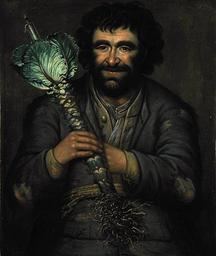 Keywords: Richard Waitt cromartie fool.jpg artwork Richard Waitt This grinning man holds a kail stock with a burning candle stuck in the top This helps identify him as the fool or jester of a Scottish laird who probably presided over Halloween festivities such as those described in Robert Burns' poetry Traditionally unmarried men and women pulled up kail stocks to confirm the character of their future partner A candle was then stuck into the end to make a torch This portrait painted in 1731 was possibly part of a series depicting Scottish clan members Oil on canvas 1731 National Gallery of Scotland https //www nationalgalleries org/collection/artists-a-z/w/artist/richard-waitt/object/the-cromartie-fool-pg-3256 other versions PD-old-100 Richard Waitt Portrait paintings in the National Gallery of Scotland 1731 1731 oil on canvas paintings in the United Kingdom Portrait 1731 portrait paintings from Great Britain Male 18th-century oil portraits of men at half length 1731 18th-century portrait paintings in the United Kingdom 1731 Files uploaded by Shakko from various sources Marottes Paintings of jesters Paintings of vegetables People with vegetables Portrait paintings of bearded men 1731 Portraits of jesters Vegetables of the United Kingdom |