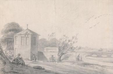 | View Original: | Richard_Wilson_-_Riverside_Scene_with_Figures,_Hexagonal_Building_Left_and_Horse-Drawn_Wagon_Crossing_Bridge_at_Right_-_Google_Art_Project.jpg (7063x4651) | |||