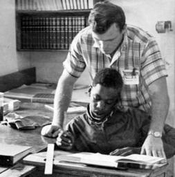 Keywords: mennonite board of missions mennoniteboardofmissions frontier boys village frontierboysvillage teacher boys rick shellenberger rickshellenberger blackandwhite monochrome indoor black and white Caption: Rick Shellenberger, a teacher at Frontier Boys Village. Colorado Springs, Colorado. 1969. Citation: Mennonite Board of Missions Photograph Collection. Mission to Divide, Colorado. IV-10-7.2 Box 2 Folder 42, Photo #01. Mennonite Church USA Archives - Goshen. Goshen, Indiana. Caption: Rick Shellenberger, a teacher at Frontier Boys Village. Colorado Springs, Colorado. 1969. Citation: Mennonite Board of Missions Photograph Collection. Mission to Divide, Colorado. IV-10-7.2 Box 2 Folder 42, Photo #01. Mennonite Church USA Archives - Goshen. Goshen, Indiana. |